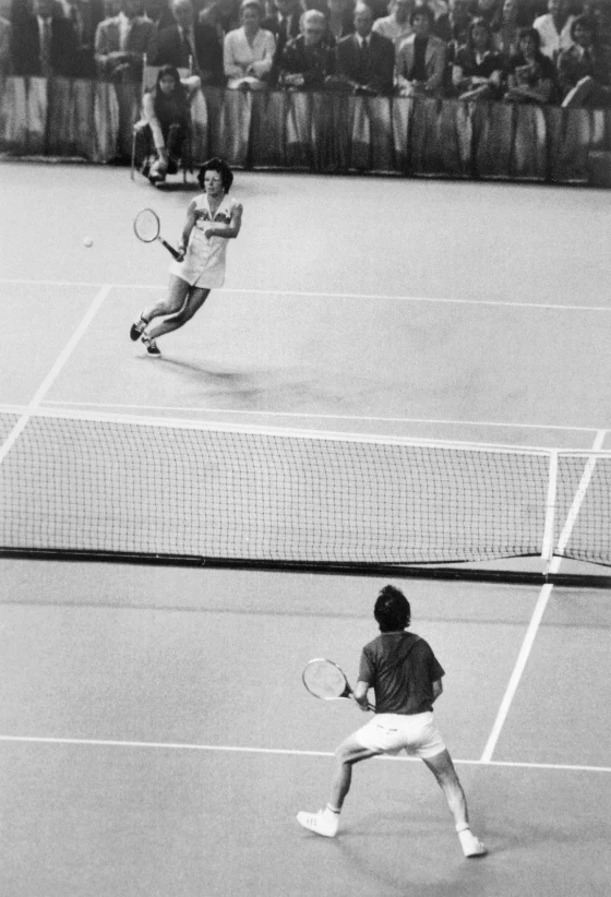 King y Riggs durante la ‘Batalla de los Sexos’ en 1973. Imagen: Web.
