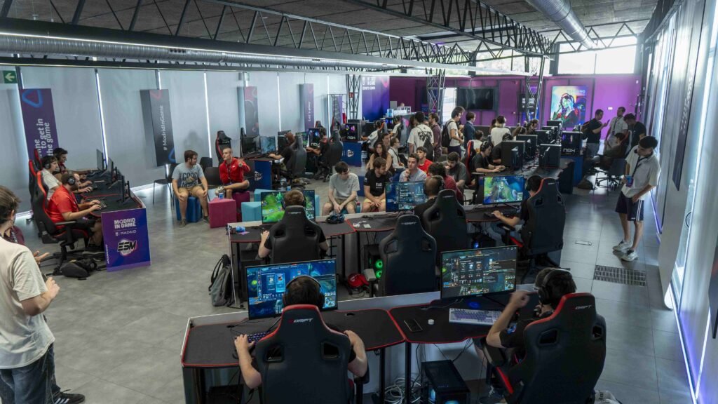En el campus de Madrid in Game, decenas de adolescentes atraviesan las puertas con mochilas cargadas de teclados…
