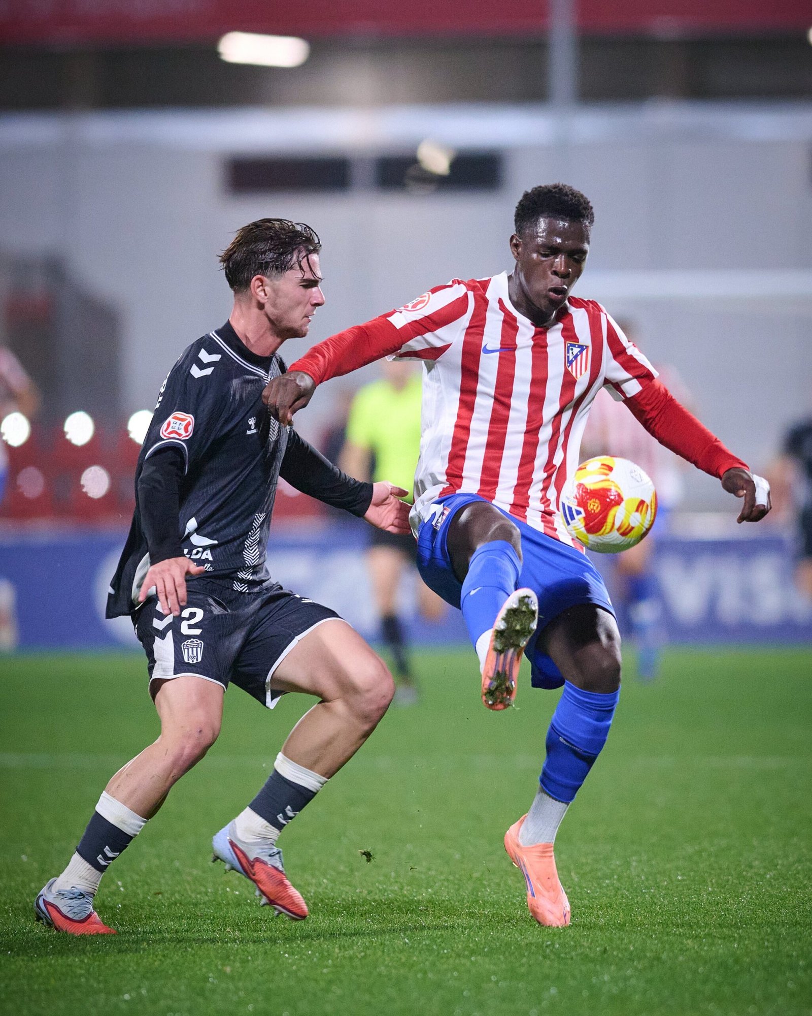 El Atlético, algo impreciso al principio, fue asentándose con el paso de los minutos. Javi Serrano lideraba la presión y Puric aportaba desequilibrio por dentro. En el minuto 18 llegó el premio: Rayane cazó un rebote en la frontal tras su primer disparo bloqueado y ajustó al palo izquierdo de Ramón Vila para el 1-0.