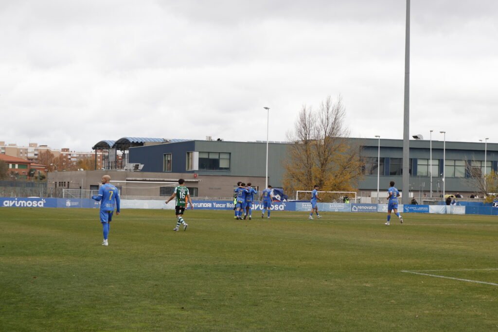 El dominio azulón era absoluto. En el minuto 36, el resultado no hacía justicia al partido. El Fuenlabrada controlaba completamente con y sin balón. El Quintanar apenas aguantaba el balón y buscaba frenar la embestida ofensiva local con pérdidas de tiempo constantes.