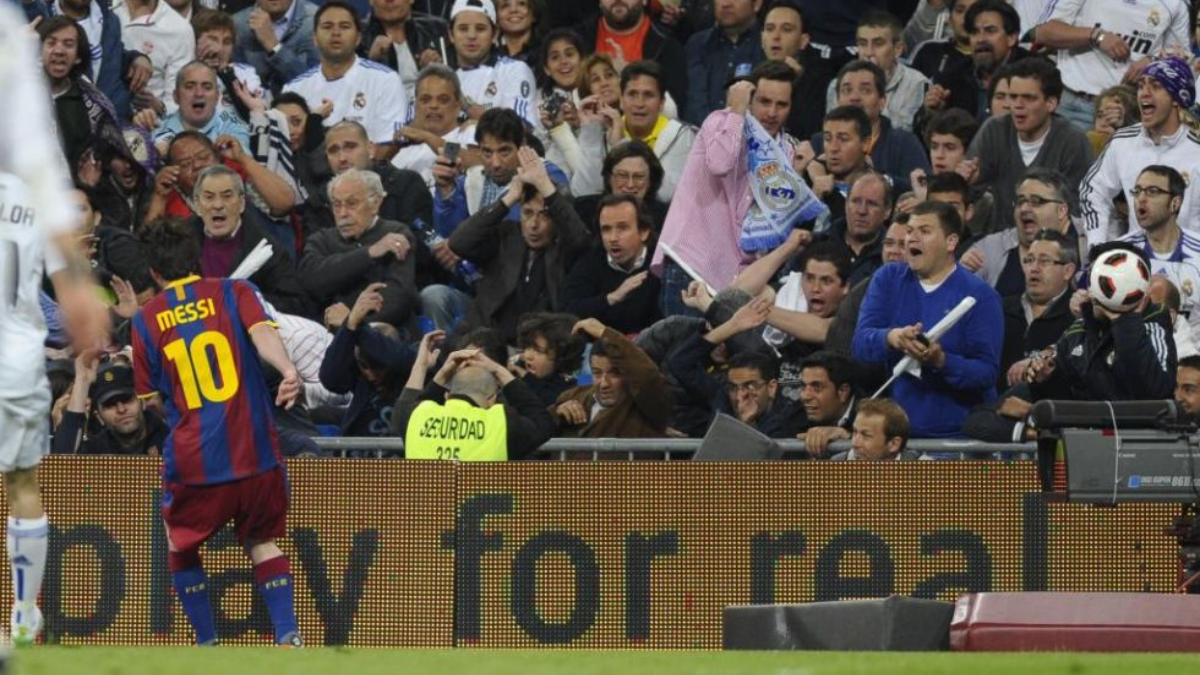 Tras una falta no señalada, Messi mandó un balonazo contra la grada del estadio merengue. Todo el estadio protestó contra el argentino, y Pepe acabó encarándose con él por esa falta de respeto, que finalmente quedó sin sanción. Este gesto por parte del culé aumentó la tensión que se vivía en los Clásicos durante la época Guardiola-Mourinho.