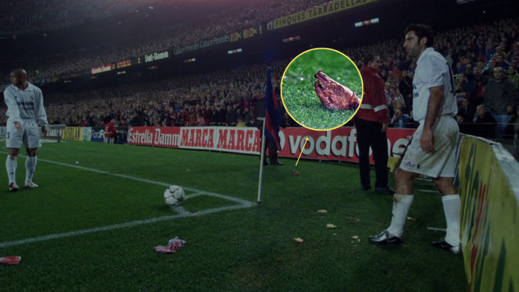 El Camp Nou no perdonó que Luís Figo fichase por su máximo rival, y esto se vivió con gran tensión en su primer partido con la camiseta del Real Madrid en el estadio de su antiguo equipo. La afición blaugrana, sintiéndose traicionada, no paró de lanzar objetos al portugués durante el partido. Entre ellos, la famosa cabeza de un cochinillo, que motivó que el árbitro suspendiera el encuentro durante un cuarto de hora.