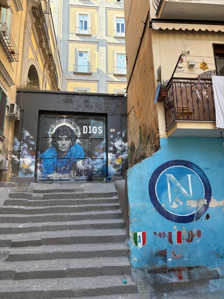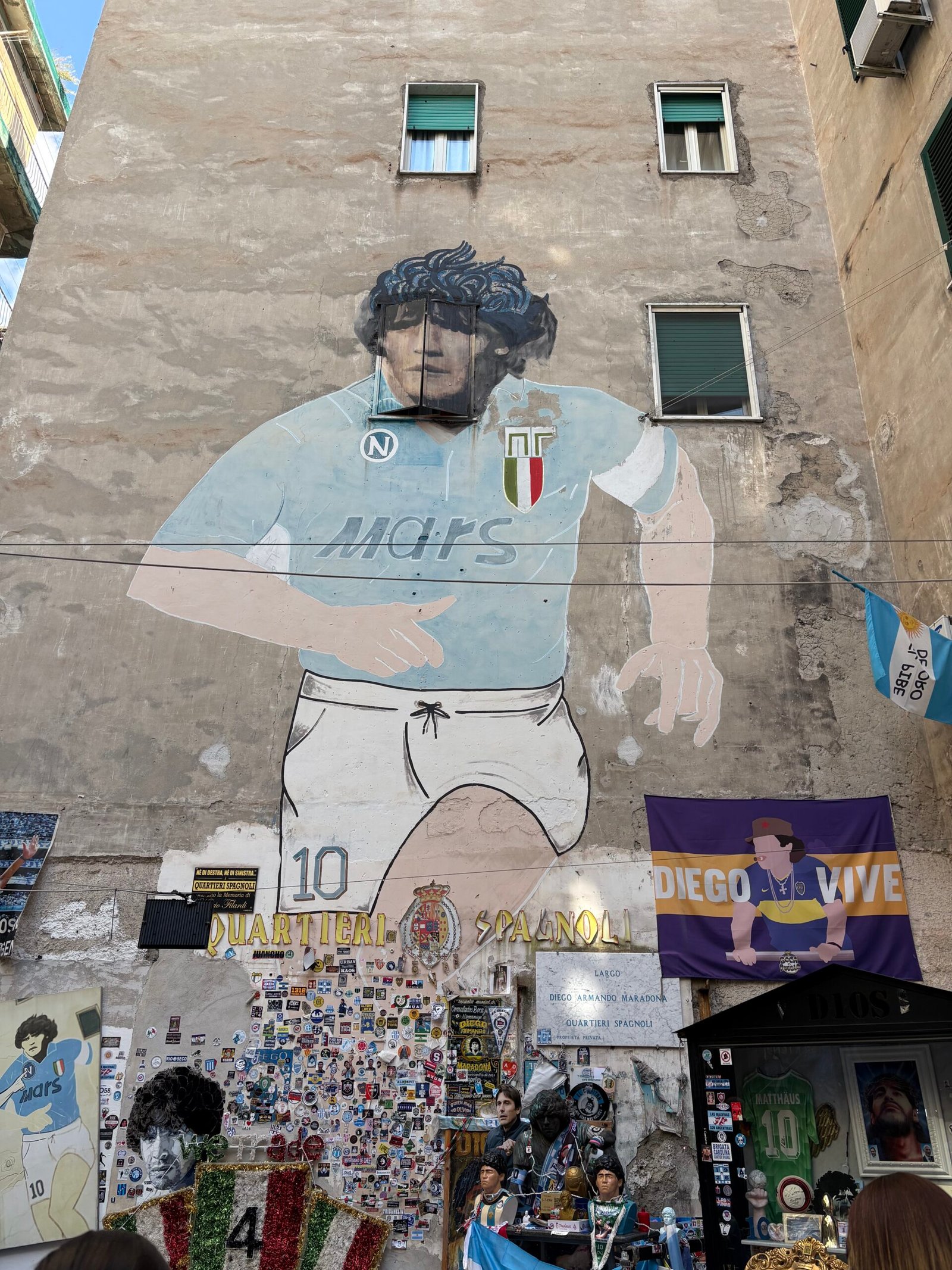 Historias en cada esquina, en cada sitio donde se sentó a beber o a comer; lugares marcados con su huella. Hasta una caja con retazos de su pelo se exhibe en una pequeña cafetería. El imponente Quartieri Spagnoli, con su mural, es hoy uno de los corazones de la ciudad. Miles de personas lo visitan cada semana: una cita obligada para quienes aman el fútbol y a Diego. El napolitano no olvida a quien ama; eso se nota a lo largo y ancho de toda la ciudad.