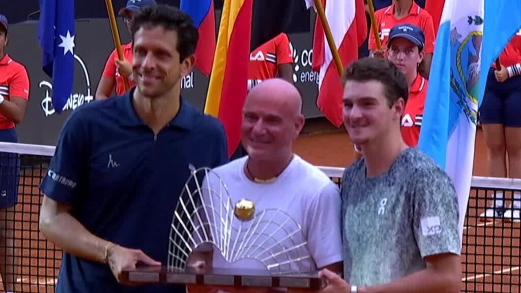 • Melo, Agassi y Fonseca / Vía: @TennisTV